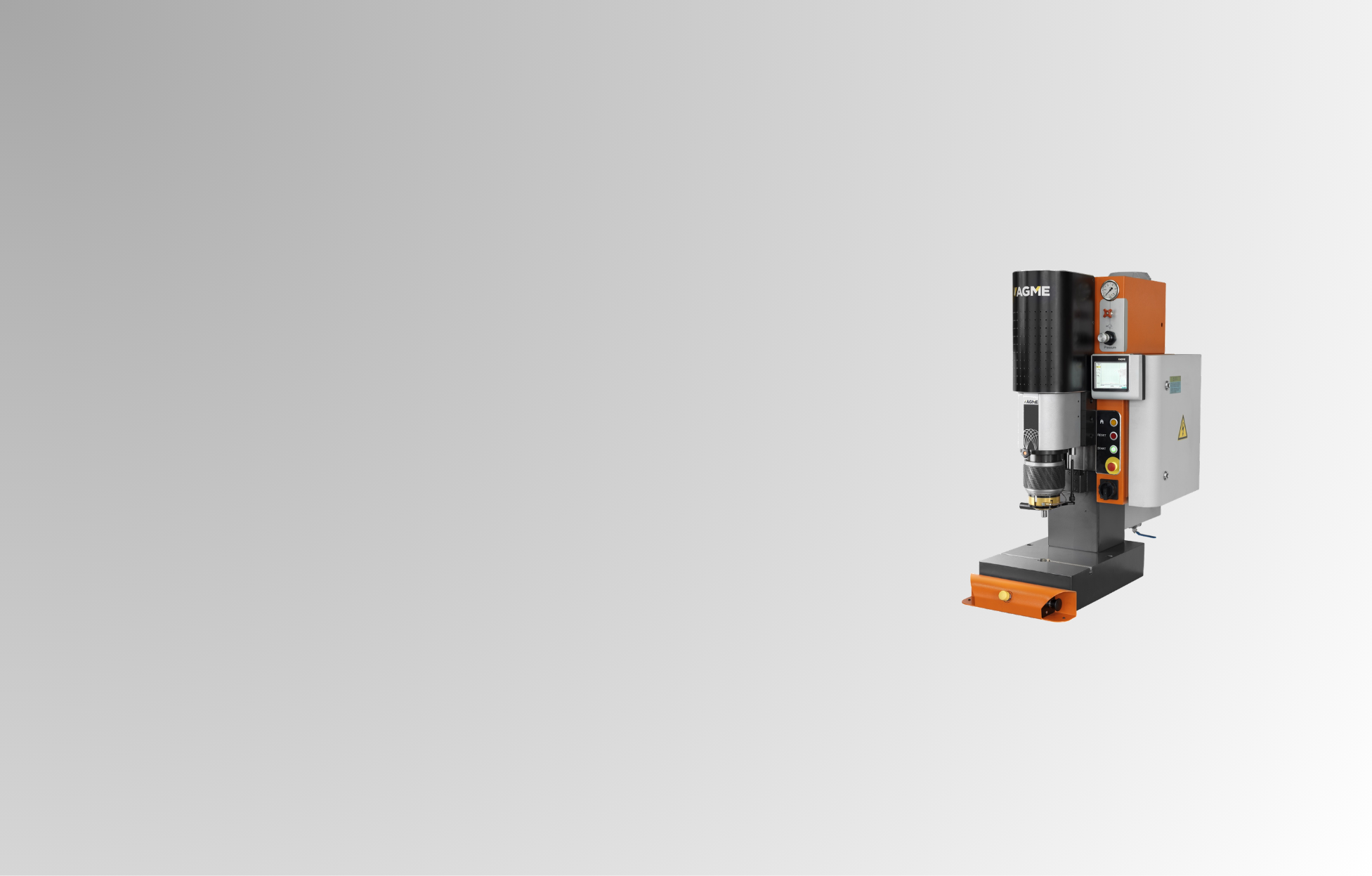 Marque AGME. Riveteuses de haute qualité et robustes. Applications spécifiques pour rivetage, roulage, et assemblage.
